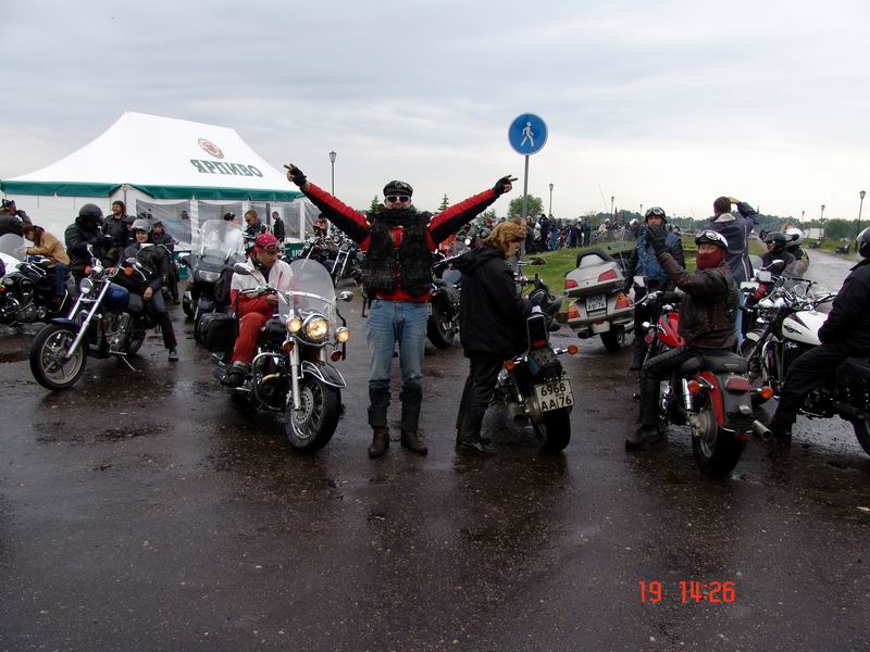 ВОЛОНЧУНАС СТАЛ БАЙКЕРОМ Пансионат "Прибрежный", где проходила встреча, почтили своим присутствием "Ночные волки" Москвы, Санкт-Петербургские "Алкорайдеры", "Стальные молнии" Вологды, ивановские "Идолы", "Десперадос" Владимира, "Присягнувшие ветру" Костромы, харлеисты из Литвы, байкеры Казани, Самары,Нижнего Новгорода, Тольятти, Твери, Курска Калуги. Среди кодоврегиона встречался даже 01 - Адыгея! Был замечен человек в жилетке "Железных тигров" Владивостока. Цель этого крупного, на российском уровне организованного "Черными медведями" празднтка - встреча увлеченных людей, обмен мотоциклетными новостями. На большой профессиональной сцене от "Юнилевера" выступали ярославские и костромские музыкальные группы, работала полевая кухня, каждого мотоциклиста ждали на вьезде символические тридцать граммов. Впервые клубную мотовстречу поситил сам мэр Ярославля Виктор Воланчунас. Как раз в этот день, 19 июня, у него был день рождения - 55-летний юбелей. Как рассказал Виктор Владимирович, в юности он сам очень даже любил погонять на мотоцикле. Был очень доволен подарком "Черных медведей" - мотоциклетной жилеткой. Ольга Продан