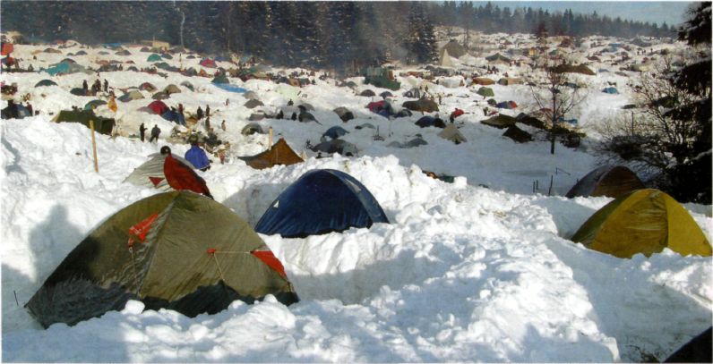 "За рулем - Северный край" (Архангельск,Вологда,Ярославль) Март 2006г. тираж 135000 экз Фестиваль немецких слонов Ярославцы посетили 50-й байкерский слет Elefanten Treffen ![]() Юбилейный слет байкеров оказался и самым экстремальным. 19 января, когда Михаил Шаров и Людмила Сопотова (Лис) стартовали из Ярославля, был самый разгар крещенских морозов. На дворе -32°С, а с ветерком и все -50°. Отважиться на такое путешествие можно было, только отлично подготовившись. Дружба в горах К экипировке наши байкеры подошли ответственно. Теплая куртка, ботинки, перчатки, шлем - все это помогло им избежать обморожений, а другие путешественники, менее подготовленные, обморозили щеки. До Смоленска, сборного пункта россиян, Михаил добрался за сутки. Подождав байкеров, ехавших из Сочи, колонна из десяти человек двинулась в Белоруссию. - Холод следовал за нами, - вспоминает Михаил. -В Смоленске мы думали, что в Белоруссии будет теплее, но там оказалось -20°С. В Бресте морозы достигли -25°, в Польше немного опустился - до -20°, -но и в Германии, комфортной Германии, было -15°С. Немцы не то чтобы испугались холодов, но были весьма озадачены. Фестиваль проходил в Баварии, под городком Песау. Невысокие, поросшие лесом горы, лощины, небольшие деревеньки. Но там, где собрались мотоциклисты, цивилизации не было. Ежегодный слет всегда проходит в совершенно диких местах, где нет ни приличных дорог, ни электричества, ни газа. Участники живут в палатках или, как получилось в этот раз, в выкопанных прямо в снегу домиках. Etefanten Treffen - самый значительный из зимних фестивалей байкеров в Европе. Отсюда и название, означающее «Встреча слонов». Логика проста: слоны настолько толстокожи, что не боятся ничего, даже холодов. В 2006 году это утверждение звучало крайне актуально. «Слоны» разместились в лощинах между холмами. Естественно, перед фестивалем организаторы расчистили тракторами от снега площадки для мотоциклов, людей и палаток, но байкеры все равно утопали по колено в белом пуху. Площадки для ночлега обустраивали так: покупали солому (по 5 евро за тюк), насыпали ее толстым слоем на снег, разбивали палатку и рядом разводили костер. Шаров перед поездкой запасся зимней палаткой и спальником, потому никакого холода не чувствовал: «Скорее наоборот. По ночам даже высовывал из мешка руки - настолько было жарко». На встречу 2006 года съехалось рекордное число участников - более 10 тысяч. Немцы, французы, итальянцы, чехи, словаки, финны, испанцы, датчане, англичане, шотландцы... Последние, кстати, разгуливали по лагерю в килтах - национальных юбках. И за все время никаких выступлений, концертных программ. Только одно общение и дружба. - Никто из нас прилично языками не владеет, но все друг друга понимали, особенно когда выпивали, - смеется Михаил. - Немцы вообще гостеприимный народ. Они привозили с собой дрова, бочки пива, поросят, которых там же и жарили. Один бюргер притащил с собой большую ванну, растопил в ней снег и стал купаться. Прямо на улице. К концу фестиваля наступило время вручения призов. По традиции кубок из гранита и яшмы вручается за самый длинный пробег. Его заработали парни из Сочи. А кубок за самый длинный пробег среди женщин получила Людмила Сопотова из Ярославля. Француженки, которые пытались составить ей конкуренцию, проехали значительно меньше, несмотря на то что дали крюк через Португалию и пробег их п