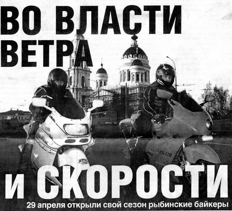 "Рыбинские известия" №89 10.05.2006 тираж 11200 экз ![]() В конце апреля многие рыбинцы стали свидетелями захватывающего зрелища - свой новый сезон открывали ярославские байкеры. Байк-клубы есть практически во всех регионах России. В Ярославской области такой клуб носит название «Черные медведи» и официально зарегистрирован в 1998 году. Рассказывать о «медведях» можно бесконечно долго - за несколько лет они накопили солидную клубную биографию и благодаря своей деятельности приобрели известность по всей стране. ![]() Члены клуба - люди, увлеченные мототехникой, объединенные жаждой дальних дорог, духом свободы и... высокой ответственностью и дисциплиной. В МС «Black Bears» («Черные медведи») существуют строгая иерархия и устав, нарушение которого может повлечь исключение из клуба. Нужно отметить, что согласно уставу дорога в клуб закрыта для любителей алкоголя, наркоманов и для... женщин. Обыватели зачастую полагают, что байкерство - это такая несерьезная взрослая игра, клубы же - не более чем развлечение. Для начала заметим, что байкеры - люди очень даже серьезные, состоявшиеся и успешные в жизни. Хороший мотоцикл, который сегодня стоит не дешевле хорошего автомобиля, могут позволить себе только обеспеченные люди. Что касается клуба, то он существует не «для галочки», его деятельность тщательно скоординирована. «Черные медведи» не только устраивают мото-уикенды и фестивали (куда они только на мотоциклах не ездили - на Байкал, в Абхазию, в Париж!), но и активно занимаются общественно полезными делами. Например, оказывают помощь воспитанникам детских домов области. Вот уже второй год принимают участие в восстановлении Храма Рождества Христова (об этом мы писали в №139 от27.07.05). В честь 60-летия Победы совершили мотопробег вокруг Рыбинского водохранилища. В этом году в своем очередном проекте «Черные медведи» уже успели отличиться. В марте они начали сбор средств на необычный подарок настоятелю Яковлевской церкви г. Ярославля отцу Георгию. Теперь у батюшки появился... японский байк. Кстати, большинство байкеров - люди верующие, на свои дела и поездки получают благословение. На этом список благих деяний «Черных медведей» не заканчивается. На одноименном сайте «Black Bears» размещен календарь жизни клуба, который постоянно пополняется новыми делами. Так что от «Черных медведей» можно и в будущем ожидать много интересного. Впрочем, одно их появление на дорогах города - уже весьма захватывающее зрелище. Зимой и ранней весной наблюдать их практически не приходилось - только самых отважных, принявших участие, например, в зимнем пробеге «Медведь-шатун» и прокатившихся в 30-градусный мороз в Германию на фестиваль «Elefanten Treffen». В конце апреля они открыли свой сезон. Каждый, кто когда-либо видел байкеров, обращал внимание на их «униформу». У них принято носить кожаную или джинсовую жилетку, на которой можно увидеть нашивки или цвета, демонстрирующие принадлежность владельца к тому или иному клубу, а также позицию, занимаемую в клубе. Так, у «Черных медведей» хэндраунды (новички, претендующие на членство в клубе) имеют право носить жилетку только с названием города на спине. Наконец, «мемберы» (полноправные члены клуба) носят три нашивки: с регионом, названием и эмблемой клуба. Так что если хотите узнать, кто летит по дорогам города - просто мотоциклист или член клуба, по