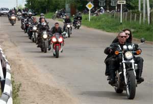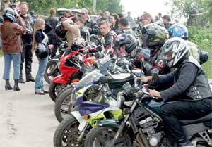 В Большом Селе мы снова были сбиты с толку. Теперь мы были поражены жесткой дисциплиной внутри коллектива. Удивительно при этом, что никаких формальных обязательств не существует. Все держится на негласном соглаcии следовать правилам. Если уж сказал президент ярославского клуба «Черные медведи» - Сергей Потапов - на территории детского дома не курить – никто не курит, все понимают - дети. Если сказал едем – значит едем, и без него понятно, раз тут больше делать нечего. Если приказ не противоречит голосу разума – почему бы не послушаться. Никаких милицейских машин сопровождения, за безопасностью колонны следят сами байкеры. Когда колонна выезжает откуда-то или поворачивает, кто-то из своих перегораживает дорогу, во избежание несчастных случаев, а может, чтобы просто не потерялись на незнакомом маршруте. Но на бесшабашных водителей такая организация совсем не похожа.