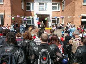 Но пока байкеры только въезжали в Большое Село, которое явно было маловато для такого количества техники. Мотоциклы полностью забили небольшую улицу перед детским домом. Здесь перед байкерами первыми выступили представители местной администрации, которые поблагодарили их за заботу о детях. Потом уже дошла очередь и до детей, который подготовили для гостей небольшой концерт. Смущались и с той и с другой стороны, и дети и взрослые. Но потом смущение прошло. В какие-то моменты, когда что-то не ладилось с аппаратурой, и музыка начинала пропадать, дети от смущения начинали сбиваться, вся толпа свирепых с виду людей начинала подпевать детям, помогая им не сбиться с ритма. Особенно удачно получилось с песней «Облака – белогривые лошадки», которую пели общим хором. Под занавес концерта детям вручили подарки, которые байкеры купили на собственные средства.