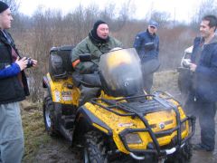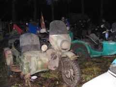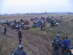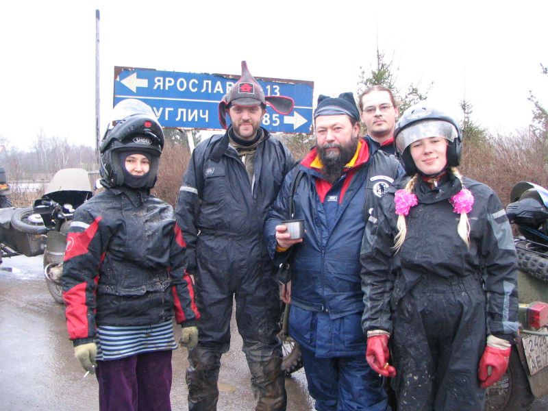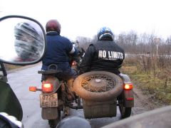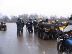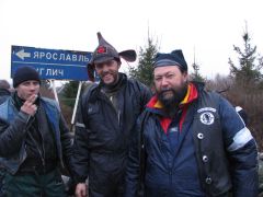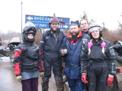 По мере приближения заветной даты волнение в рядах участников усиливалось: на дворе уже стоял декабрь, а погода и не думала становиться зимней: температура выше нуля, вместо снега с неба сыплется противный дождик, а дороги в сельской местности превратились в раскисшие направления. Маршрут экспедиции был проработан ещё в ноябре, по первому снегу и морозцу. Тогда он был проходим и многогранен, но никто не предполагал, что к декабрю всё вновь растает! Президент ВВМС Сергей Потапов (Босс), однако, все сомнения отверг: Медведь-Шатун состоится при любой погоде! «Как получится - так и поедем!» Этот девиз, мимоходом брошенный Боссом, мы потом много раз вспоминали во время поездки... Поехали! Итак, в полдень 8 декабря наш экипаж стартовал из Москвы. Выбравшись сквозь пятничные пробки, становимся на Ярославскую трассу. Периодически меняемся за рулём. Здесь надобно сделать небольшое отступление: несмотря на то, что я всю жизнь катаюсь на колясочных мотоциклах, ездить самому пассажиром в коляске на сколь-нибудь значительное расстояние мне вот как-то не случилось... От других приходилось слышать совершенно противоположные отзывы: одни говорили, что ездить в коляске очень страшно, другие - что это настоящий кайф. Теперь я могу сказать определённо, что вовсе даже это не страшно, а напротив - очень интересно; только холоднее, чем за рулём, но в целом мне понравилось! Поскольку наша экипировка была рассчитана на мороз, а по пути температура не опускалась ниже +5, то чувствуем себя весьма комфортно. И около 5 часов вечера, по рано наступившей темноте мы въезжаем в Ярославль. Сразу по приезде в Берлогу получаем полный комплект стартовых бумажек: талоны на питание-проживание, нашивки, инструкции о том, как что будет происходить. Затем отдаёмся гостеприимству ярославских друзей, Юры Африки и Сергея Германовича. Вечер посвящается дружеской тусовке с замечательными шашлыками и умеренным возлиянием напитков: как-никак завтра за руль, и экстремизм в принятии алкоголя здесь неуместен. Постепенно подтягиваются всё новые гости, становится людно и весело. Представляю, что же творится сейчас в Берлоге, куда съехались буквально сотни участников завтрашнего мероприятия! Наутро - ранний подъём, лёгкий завтрак, и мы выдвигаемся в Берлогу. Редкие в этот час автомобили шарахаются от группы мотоциклистов, с рёвом несущихся по пустынным улицам. Я их понимаю: мотоцикл в декабре и без того увидишь нечасто, а тут их ещё и несколько, да с явными гоночными намерениями... Быстро пролетаем почти через весь город, и вот мы в Берлоге. Здесь всё уже кипит, как в муравейнике! Рычат прогреваемые моторы, снуют люди. Никогда я не видел столько диковинных колясочников в одном месте. Ямаха V-max, БМВ GS, Кавасаки KLE, Хонды, макси-скутер Ямаха Majesty с фирменной колясочкой смотрится как конфетка. Жёсткий эндуро с боевой грузовой коляской. Больше всех, разумеется, «Уралов». Даже грамотно и красиво зачепперённый Днепр - и тот с коляской. Присутствует даже трайк на базе «запорожского» мотора, и грузовой ирбитский трицикл МГ-350. Старшие групп формируют свои команды, которые поедут отдельно друг от друга по разным маршрутам. Команды делятся по классам техники: жёсткие эндуро - в одну команду, колясочники - в другую... всего получилось шесть команд; квадрациклы образуют свою особую группу. Маршруты для них ра