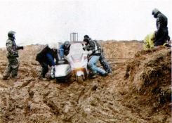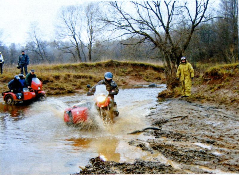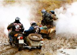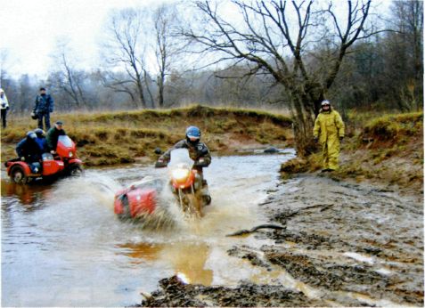 "За рулем - Северный край" (Архангельск,Вологда,Ярославль) Январь 2007г. Медведь-шатун побурел Зимний мотопробег, или Борьба в грязи Ярославские «шатуны» решили повторить прошлогоднюю декабрьскую экспедицию, когда байкеры сквозь снег прорывались к намеченной цели. Зима вообще считается не лучшим временем для моторазвлечений. Неподготовленные седоки падают, колеса утопают в снегу, тело деревенеет от холода. Хотя если правильно подготовиться... Заявки от желающих принять участие в зимней мотоэкспедиции «Черные медведи» принимали с осени. Президент клуба Сергей Потапов вместе с группой таких же фанатов обозначил маршрут на карте и сам обследовал его на практике. Трасса оказалась пригодной для езды даже на неподготовленных мотоциклах с коляской: из 150 километров 8о — по асфальту, остальные-по грунтовке, полям и раскисшим лесным дорогам. В самую глушь решено было не забираться. Байкеры удалялись от Ярославля максимум на зо километров, но грязи хватало и здесь. Однако погода внесла свои коррективы. Когда к началу декабря снег так и не подвезли, а земля не замерзла, байкеры призадумались: как поедут и что это за шатун такой без снега? Но об отмене экспедиции никто не думал. Медведи же ничего не боятся, тем более какой-то грязи. Участники начали приезжать в Ярославль еще в пятницу, 8 декабря, за день до старта. Большинство разместилось в гостиницах, но некоторые экстремалы решили ночевать на клубной базе, в «Берлоге». Не обошлось и без рекордов. Байкеры из Нижнего Новгорода добрались до Ярославля на квадроцикле. Старт состоялся g декабря в g часов утра при температуре 7 градусов выше нуля. Колонна из 250 человек выехала из города и с головой окунулась в российское бездорожье. Пробирались отдельными группами по 15-20 мотоциклов. Всю прелесть теплой зимы байкеры ощутили, когда пересекали поле, заваленное отходами с ближайшего коровника. Прельстившиеся неземным цветом поля, некоторые мотоциклисты жестоко поплатились: колеса скользили в зеленоватой жиже, седоки падали, но упрямо тянулись к спасительному лесу. В планах организаторов значился и такой пункт, как стрельба из охотничьего оружия, для чего был выбран заброшенный карьер. Пока охотники палили из ружей, на другом конце эндуристы пытались ездить по краю карьера. Вообще, маршрут экспедиции был проложен чуть ли не с учетом индивидуальных пожеланий. Те, кто хотел грязи, как на тро-фи-рейдах, штурмовали кашеобразные дороги. Кто хотел пересеченной местности — форсировали вброд мелкую речку. Занятий хватило всем. В итоге к концу дня мотоциклисты перестали узнавать друг друга: людей и технику покрывал толстый слой грязи. Местные жители, желавшие сфотографироваться на мотоциклах, увидев их, находили какой-нибудь благовидный предлог и исчезали. Когда вечером в полной темноте колонна приехала к пансионату, где были намечены банкет и ночлег, администратор запускал всех под честное слово. Показывать паспорт не имело никакого смысла, так как перед этим необходимо было вымыться. Байкеры так и поступили: сначала залезали под душ в полной экипировке, а затем без нее. После следовал банкет и награждение победителей призами и памятными грамотами. В воскресенье отдохнувшие «шатуны» принялись разъезжаться. Правда, большинство мучил один вопрос: бурый шатун прошел, а будет ли белый шатун? Сергей ГОРОДЕЦК