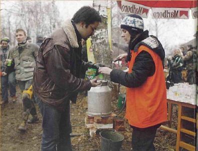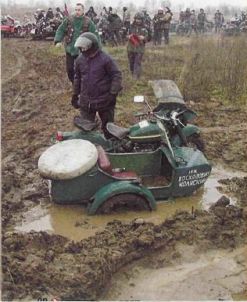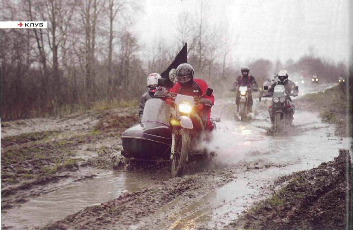 Журнал "МОТО" Февраль 2007г. ![]() Медведь, как и байкер, - существо сезонное: зимой ему положено спать. Шататься ни тот, ни другой никак не должны... В ярославском мотоклубе «Черные медведи» (Black Bears MC) так не считают. ПРОГУЛКИ С МЕДВЕДЯМИ Слет «Медведь-шатун» задумывали как непродолжительные зимние покатушки по третьестепенным дорожкам Ярославской области, а то и вовсе без дорог - по заснеженным лесным тропам. Идея пробега приглянулась многим мотоциклистам России - прошлогодний «Шатун» имел сокрушительный успех: в экспедицию отправились 87 человек... В декабре 2006-го количество «отморозков» поразило даже организаторов - 227! Но куда больший сюрприз - зима без снега. Вместо -15° С и вьюги навалились +8" С и дождь. Тем интересней! Когда маршрут размечали, он казался проходимым и разнообразным по степени сложности. Кто ж мог предположить, что к декабрю все растает! Президент ярославского мотоклуба Сергей Потапов покончил с сомнениями, когда разослал по форумам: «Медведь-шатун» состоится при любой погоде!» Эти покатушки - триумф оппозитов! Байкеры вспомнили, за что любили «Уралы» и «Днепры», почему не продавали и хранили в гаражах. Оппозит неприхотлив, проходим и вынослив. К «Уралу» и «Днепру» легко прилепить коляску - ценный «девайс» на скользкой дороге. Но приехали на «Шатун-2006» и другие «колясочники»: колясочный BMW-эндуро, старая Honda и даже V-Max с прицепом! Информация для тех, кто это же захочет устроить в своих регионах. Каждый участник слета внес 1500 рублей. За эти деньги получил талоны на «койко-место» в пансионате, завтрак, торжественный ужин, нашивку с эмблемой пробега. Чтобы все успеть, старт экспедиции назначили на 8 утра. Выехали на дорогу. Здесь сонные автомобилисты жались к обочине: нечасто доводится зимой повстречать колонну рычащих оппозитов, да еще в такую рань! Чтобы масса участников была управляемой, Black Bears MC разделили всех байкеров на группы, в каждом звене проводник и старший группы один из «медведей». На них яркие желтые жилеты - видно за километр. Группы формировали по классам техники: эндуро, «колясочники», «кроссачи», отдельная тусовка - на ATV, Всего образовали шесть команд. У каждой из групп свой маршрут, они различались по степени сложности. Но даже на самом простом скучно не было никому! Я ехал в «белой» команде (у каждой был свой цвет) в коляске оппозита компании «Урал-Рус». Попетляв по окраинам Ярославля, выбрались к берегу Волги. Грунтовка предательски кончилась - пошли «пампасы». Форсирование грязевой пропасти для многих не прошло бесследно: один менял порванную резиновую муфту, другой лихорадочно нацеплял кроссовую резину на ведущее колесо - понимал, снисхождения от распутицы не жди... Отдохнули - рванули дальше. Именно рванули: наш ведущий «медведь» Юра (Африка) задал такой темп, будто мы убегали от табуна разъяренных медведей-людоедов. Прибыли на стрельбище - пошла предусмотренная программой пальба из охотничьих ружей. Это фирменное «угощение» «Черных медведей». Огонь вели не из какой-нибудь там игрушечной пневматики - из настоящих ружей 12-го калибра. Они - громыхали как гаубицы! А вот и брод... Как много в этом звуке для сердца байкера слилось.,. Берега - глинистое месиво, уровень воды поднялся так, что доходил оппозитам до цилиндров. Кто-то попытался перелететь препятствие с ходу: взвились фонтаны брызг, поднялись облака - это в