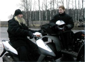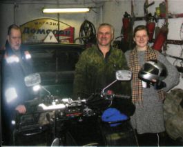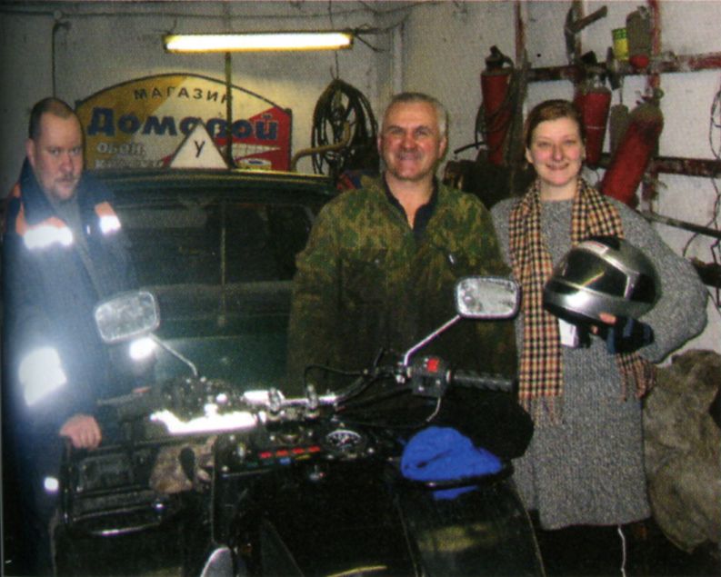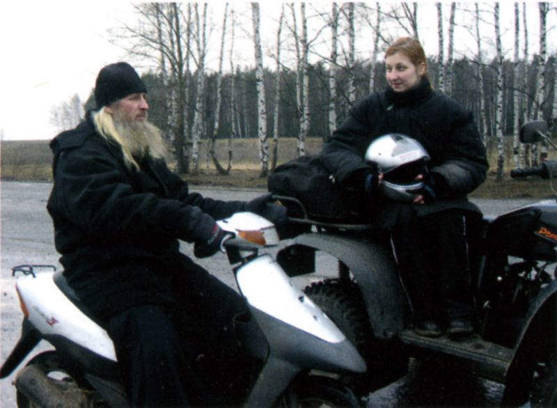 Я на заднем сиденье квадрика чувствовала себя Винни-Пухом: «мишки очень любят мед! БУМЦ! Отчего же, кто поймет? ДЫЩ!...». Утешала мысль, что могло быть гораздо хуже, если бы декабрь был традиционно морозно-снежный, а не как сейчас - +3 и даже без дождя! В Ивановской области нас снова остановили «гаишники». И тут мы заметили как меняются вопросы, в зависимости от географического положения: кроме привычного «Это что? Где купили? Сколько стоит?» позабавил вопрос «А сюда можно такие колеса поставить, чтоб по грязи и болотам лазил?». Вообще мы на квадрике вызвали у людей на дороге, мягко сказать, удивление: нам сигналили, махали, даже иногда останавливали для того, чтобы «покурить и поболтать». В деревне Пестяки [Ивановская обл.) на заправке мы встретили очень интересного человека, водителя скутера - святого отца Фотия. Опередив наш вопрос, он сразу пояснил, что он не байкер, а приобрел подержанный скутер (Suzuki) потому что это удобно и дешево. Пожалел, что не едет на байк-слет, ведь там наверняка бы пожертвовали шлем, который ему очень нужен. Он благословил нас, и пожелал, чтобы нас сопровождал ангел-хранитель. Это нам очень помогло в дороге! Отца Фотия мы в пути неоднократно вспоминали с благодарностью. В городе Шуя нам пришлось сделать вынужденную остановку. У нас потекла «тормозуха». Причем так радостно потекла, чуть ли не струей! Без тормозов ехать было как-то не вполне уютно, и мы поспешили найти какой-нибудь сервис. Но, то ли в этом городе их действительно нет, то ли ни один местный житель о них ничего не знает. И опять нам повезло: недалеко обнаружился спортивно-технический клуб «РОСТО». Здесь нас пустили в гараж, где обеспечили инструментами, различными болтиками, и даже напоили горячим кофе, не взяв за это с нас ни копейки!