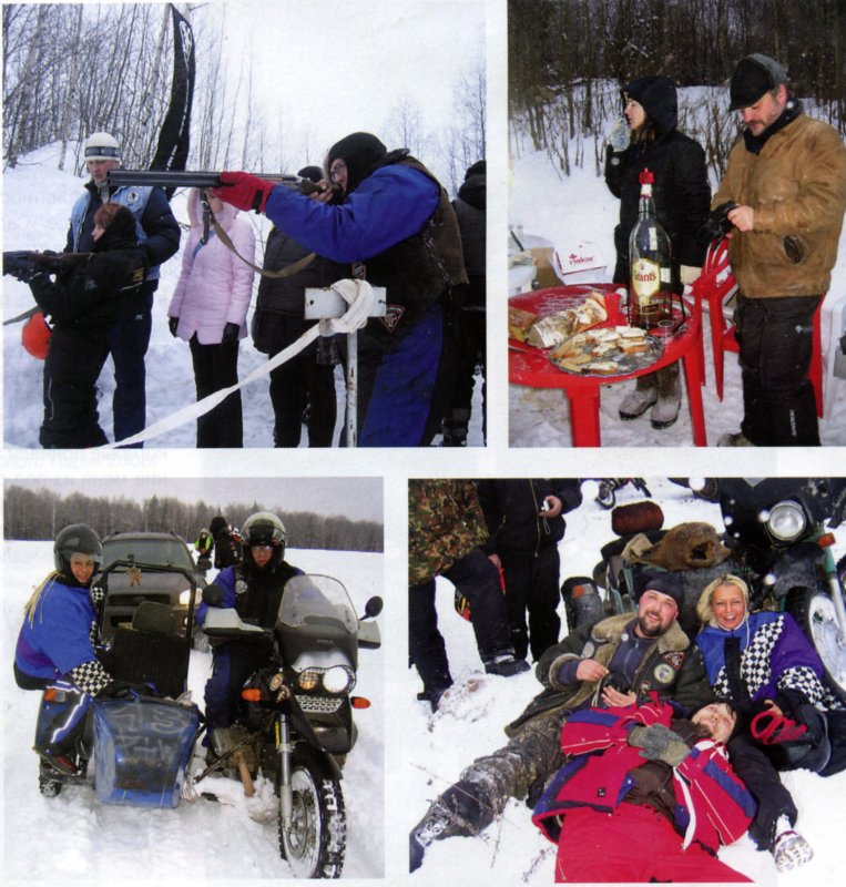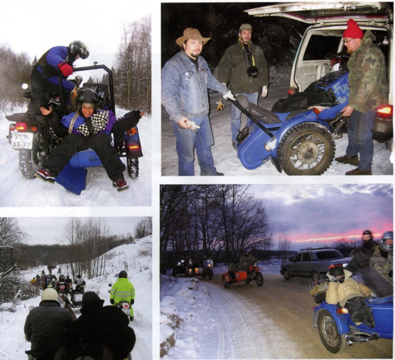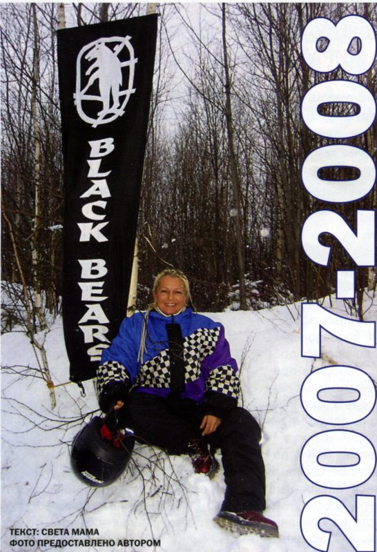 Мотомания №7(19) Февраль 2008г. тираж 7000 экз ЗИМНИЙ СЕЗОН ![]() Приняв участие во всех «медвежьих» мототусовках, кроме зимнего мотопробега «Медведь-Шатун», конечно воспользовалась возможностью исправить упущение этой зимой! Поскольку возможности ехать самой за рулем не представилось, напросилась к московскому Максу пассажиром в коляску на БМВ (БМВур-старый знакомый по «Медвежьей миле»:)) «МЕДВЕДЬ-ШАТУН» ДЕКАБРЬ 2007 Г. Как обычно, Питер нормальной зимой не балует. Дождь, грязь и холодная сырость уже который год мучают нас до самого января. Поэтому минус 6 и белоснежные просторы Ярославской области приятно радовали душу и глаз. Из Москвы выехали на двух машинах, в одной из которых ехал мотоцикл, расчлененный на собственно себя и коляску. Собрали его непосредственно перед торжественным въездом на территорию слета, как это принято у московских товарищей :). Встреча, аккредитация, ужин и в койку. Выехали утром затемно. Медведь-шатун сам зимой не спит и других не поощряет. Сытный завтрак, быстрые сборы, кто не успел - сам виноват! Сначала дорога совсем не радовала - сплошной лед, да еще в горку... Пару раз нас тянули с помощью веревки на джипе. Наконец добрались до начала мототрассы колясочников (для опытных эндуристов был приготовлен специальный маршрут). «Медведь-Шатун» - весьма серьезное испытание и для людей и для мотоциклов. До этого я наивно предполагала, что скучнее и неинтереснее занятия в поездке для мотоциклиста, чем сидение в коляске, и придумать-то невозможно. Первые же километры по медвежьей трассе показали, насколько я ошибалась! Густая снежная масса под колесами, неровности колеи, горки, впадины, мостики - все эти естественные препятствия и не собирались давать расслабиться ни одному из участников зимнего мотопробега. Останавливаться нежелательно - с места тронуться почти невозможно. Каждый раз нам с Максом приходится толкать мотоцикл, чтобы продолжить движение. Осознав свое значение в процессе, я уже, как заправская «обезьяна» (а именно так называется 2-й номер в соревнованиях «колясочников») без вопросов толкала мотоцикл, запрыгивала на ходу и работала противовесом в поворотах. Какая коляска?! Почти все время приходилось ехать на ее крыле, держась одной рукой за спинку, другой за переднюю ручку. Даже «Медвежья миля» не доставила мне столько удовольствия и драйва! После мостика через речушку дорога резко сворачивала вправо и вверх. В очередной раз подтолкнув мотоцикл, не успела запрыгнуть и, отдуваясь, потопала в горушку за Максом, помогая по дороге поднимать мотики эндуристам. Вот уж кому пришлось тяжелее всех! Почти всю дорогу не мотоциклы их везли, а они тащили мотоциклы через снег. В какой-то момент, чтоб увеличить нагрузку на заднее колесо и выбраться из снега, Макс попросил меня сесть позади него. Мы тронулись и поехали. Облегченная коляска сыграла свою роковую роль :). Я, словно в замедленной съемке, вдруг увидела, как она приподнялась над дорогой, а БМВ накренился влево. В ту же секунду мимо меня пролетело грузное тело с блаженной улыбкой на лице и плюхнулось в белоснежную равнину. С удивлением обнаружила, что мотоцикл после катапультирования Макса выровнялся и продолжает свой путь без водителя. Испугаться не успела, так как мы мягко тюкнулись в сугроб... Вообще «тюканье в сугроб» происходило весьма регулярно и я к этому по