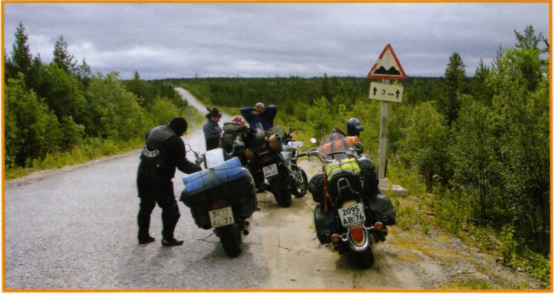 AUTOТЕМА №10 Март 2008г. тираж 5000 экз ![]() Президент BlackBears, Сергей Потапов (Босс), признается, что в первый раз посмотреть на Русский Север поехал случайно, в 2005 году. Карелия, Соловки, Валаам, Белое озеро и сам Белозерск, русская история. Все это хотелось хотя бы разок увидеть. Краткое странствие удалось. Но осталось ощущение недосказанности. Хотелось посмотреть это все с чувством, с толком... Вторая карельская поездка была более организованной и привязанной к православной тематике «медведи», при горячем участии отца Георгия, посетили Валаам, Соловецкие острова и другие монастыри и святыни. Через год Север снова заставил повернуться к себе. Босс: «В августе 2007 очень хотелось увидеть места, свободные от «массовых» туристов, заехать вглубь Карелии, посмотреть, как живут люди. Полазать по горам, отъехать в сторону от трассы Питер - Мурманск». Хотелось воочию увидеть гору Воттавару, славную своими шаманскими камнями и Сейдозеро - место, связанное с язычеством. Состав экспедиции сформировался на форуме сайта «Черных Медведей». Четыре мотоцикла - два чоппера, один легкий эндуро, один городской. Шесть человек, две дамы. Старт из Ярославля в 10 утра из ПГ 4 августа 2007 года. Маршрут: Вологда - Кирилов (День Рождения клуба «Дикий Ветер») - Вытегра - Пудож - Каргополь (Архангельская обл.) - назад в Пудож - Медвежегорск - гора Воттоварра (восхождение пешком) - назад в Медвежегорск - Кемь - Муезеро - остров Троицы - назад в Кемь (от Кеми часть маршрута на джипе и лодке) - Оленегорск - Ревда - от рудника пешком через перевал на Сейдозеро - назад на рудник - Оленегорск - Мурманск. Домой - через Петрозаводск - Питер - Великий Новгород - Тверская обл. - Ярославль. АСФАЛЬТ И ПРОСЕЛОК. ЗАПРАВКИ. На территории Ярославской и Вологодской областей дороги были хорошими. Но в Архангельской, в соответствии с маршрутом, пришлось свернуть на проселки. С настоящими Русскими Лужами. На одной из дорог местные жители рассказывали путешественникам о луже, которая простиралась по проселку никак не менее 700 метров кряду - но все местные ее благополучно проезжали. Маленький отряд решил эту беду миновать. Пришлось признать, что чоппер на проселке чувствует себя заметно хуже, чем эндуро. Гравийные дороги, проселки с лужами, дороги из белой глины, на которых ни маневрировать, ни газовать в сырую погоду нельзя. А в сухую они немилосердно пылят, забивая одежду и мотоциклы тонким белым слоем. Уворачиваясь от тяжеленного камаза-лесовоза на сырой глине, Босс не удержал мотоцикл. Нестрашное, но болезненное падение закончилось без членовредительства и с небольшими потерями для мотоцикла. В целом, как признавались путешественники, дороги в Архангельской области хуже, чем в Карелии. В Карелии, по маршруту - асфальт, красота и цивилизация. А сразу за указателем границы области и республики - одно безобразие. То вверх, то вниз укатанные и разбитые лихими лесовозами дороги. А заправки и вообще поражают своим разнообразием. На цивильных трассах и заправки соответствуют европейским - по сервису и внешнему виду. Сельские заправки вдали от больших дорог могут вызвать ностальгию - все до сих пор так, как было при советской власти. Вплоть до очередей - даже если посетители прибывают со скоростью один за полчаса. Тем не менее, вдали от больших дорог и нормальных заправок, небольшой бизнес процветал. А цены радовали. ША