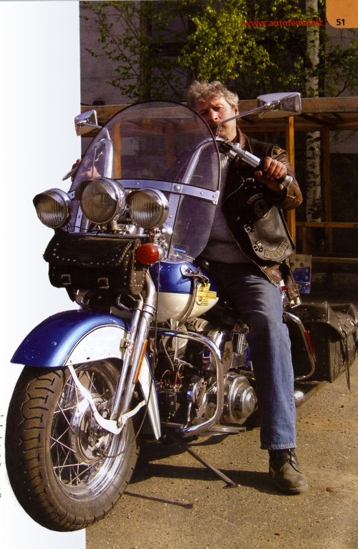 AUTOТЕМА №13 Июнь 2008г. тираж 5000 экз ТРУДНО поверить, но в конце сороковых - начале пятидесятых годов прошлого века на территории СССР на дороге можно было встретить «Харлей-Дэвидсон» едва ли не чаще, чем отечественный «газон». ![]() Общение с легендой В конце шестидесятых останки легендарных мотоциклов можно было увидеть чуть ли не на каждой более-менее объемной свалке сельхозтехники. Отличные военные мотоциклы модификации WLA-42 поставлялись в Советскую Россию американцами по ленд-лизу. И были оснащены двухцилиндровыми двигателями, с фирменным сорокапятиградусным наклоном цилиндров. Они предназначались для эксплуатации по тяжелым дорогам с большой нагрузкой - по идее, к военной модификации «Харлея» крепилась коляска. И, кроме водителя, тягловитый трудяга вполне мог везти еще двух пассажиров с полной выкладкой - вооруженных, в шинелях, с плащ-палатками и с укладками патронов про запас. Большинство этих ленд-лизовских «подарков» и до сих пор бороздило бы просторы страны, будь у советских людей чуть больше культуры в обращении с заокеанской техникой и умения грамотно ее чинить и эксплуатировать. Но, к сожалению, сломанные мотоциклы сначала неправильно чинили, а потом безжалостно выбрасывали как старье. Молодое поколение 60-х и 70-х годов прошлого века мечтало о «Чезетах» и «Карпатах», не оглядываясь на выносливых, но ржавых и требующих приложения рук «немцев» и «американцев» - эхо войны. И лишь в восьмидесятые мотоциклисты и любители техники начали осознавать, что «Харлей-Дэвидсон» - это красота вне времени и возраста. Это легенда. Тогда и появились первые любители-«харлееводы», разыскивавшие старые мотоциклы и любовно их воссоздававшие. Появились на дорогах первые мотоциклы, получившие вторую жизнь. С ЛЮБОВЬЮ И НЕ ТОРОПЯСЬ Вы понимаете, что такое мотоцикл «Харлей-Дэвидсон»? Это мотоцикл не для того, чтобы гонять, как придурошный. И не для того, чтоб пирожки развозить. Владелец «Харлея» должен ехать не спеша, километров так на 60. Не обгоняя. Обозревая окрестности. С чувством собственного превосходства и с некоторым презрением к окружающему. Ему сами должны уступать дорогу. Так считает Дмитрий - теперешний владелец и мастер, давший старине WLA-42 вторую жизнь. Старик-ветеран «Харлей-Дэвидсон* нормально держит на дороге 80 км/ч и выжимает 130. Но зачем гнать? Общение с легендой не терпит суеты... Купил мотоцик Дмитрий в началу 90-х. За 2 тысячи рублей. От первой встречи новый владелец легенды ждал большего. А мотоцикл, стоял в углу гаража ржавенький, зелененький. Покрашенный рачительными хозяевами остаткам и масляной краски для наружных работ. Папа, который дал одну тысячу рублей на покупку, пришел в гараж, глянул на зеленый корпус и плюнул - тьфу ты, деньги на ветер! ПРИШЕЛ, УВИДЕЛ, ПОЧИНИЛ Мотоцикл был в относительно хорошем состоянии. Более-менее комплектный. Рама только «пиленая» была. Предыдущие хозяева то ли пытались что-то переделать, то ли что-то приварить.... Все равно эту работу пришлось переделывать и исправлять. Сначала новый владелец хотел восстановить «Харлей-Дэвидсон» таким, как он был. Но потом понял, что ездить на идеально восстановленном мотоцикле будет очень непросто - очень жесткая задняя подвеска делала его неудобным при езде и неуправляемым на ухабах. Поэтому счастливый владелец полувекового чуда просто начал ремонтировать и