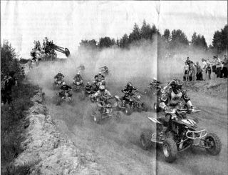 "Северный край" 24.06.2009 Все на аэродром Южный! «Какая коррида, какая Испания? Все в Рыбинский район, на аэродром Южный! Вот где спорт, вот где жизнь! Вот где дух захватывает!» - с восторгом кричал в микрофон спортивный комментатор ветеран рыбинского мотоспорта Александр Попов, пытаясь «накрыть» рёв моторов - в классе «OPEN» стартовали сразу 38 мотоциклов. Впервые аэродром Южный в районе посёлка Красная Горка под Рыбинском стал ареной соревнований российского уровня: при большом скоплении болельщиков здесь прошли второй этап Кубка России по мотокроссу среди женщин, четвёртый этап Кубка России по мотокроссу в классе мотоциклов с колясками, открытое первенство по мотокроссу на призы областной организации ДОСААФ РОСТО, второй этап чемпионата России по кроссу на квадрациклах. Редкий по зрелищности, по накалу страстей спортивный праздник собрал на трассе около ста гонщиков из Вологды, Ленинградской области, Москвы, Санкт-Петербурга, Углича, Костромы, Ярославля, Иванова и других российских городов. Участников этапа Кубка и чемпионата России приветствовали на рыбинской земле глава Покровского поселения Татьяна Забелина, президент Российской национальной федерации мотоспорта Григорий Шулик, депутат Ярославской областной Думы Евгений Ершов, настоятель Спасо-Преоб-раженского собора протоиерей Василий Денисов, начальник Рыбинской ГИБДД Андрей Пушкин, начальник Рыбинского аэроклуба Виктор Веселое. Президент федерации удивился - везде кризис, а рыбинцы создают новую трассу, достойную соревнований столь высокого уровня. Уже в третий раз на Южном собираются российские мотогонщики. В марте 2007 года отважные спортсмены обкатывали самую первую трассу, зарываясь в ещё мороженую землю. В феврале прошлого года здесь прошли соревнования памяти братьев Орловых. В этом году трасса обно- вилась, были устроены высокие трамплины, крутые виражи, широкая стартовая поляна. Трасса гонщикам понравилась. - Здорово! Можно, конечно, трамплины сделать ещё шире и длинней. На трамплине гонщик пролетает до сорока метров, это добавит драйва спортсменам и адреналина зрителям, - делился впечатлениями представитель династии мотогонщиков Ореховых из Воскресенска. Девятнадцатилетнего Алексея Орехова болельщики назвали летающим гонщиком - на трамплине ему не было равных. Впрочем, самый большой трамплин на трассе - сразу после крутого виража, в который гонщики уходили почти со старта, - притягивал зрителей словно магнит. Не случайно именно здесь - максимум столкновений, завалов. заглохших моторов. Без этого не бывает мотоспорта. Но всё обошлось без серьёзных травм. В женском заезде - четыре участницы. Победительницей вновь стала москвичка Светлана Хасанова, которая намного опытней соперниц из Сергиева Посада и питерской команды -ещё совсем девчонок. В свободном классе сильнейшим гонщиком стал угличанин Алексей Скоморохов, среди экипажей мотоциклов с колясками в отечественном классе «золото» выиграли шуйские гонщики, а в международном классе - волог-жане Победу в гонках на квадрациклах одержал калужский спортсмен Игорь Мазурин. До мелочей продумывал трассу Сергей Милющенков, авиатехник Рыбинского аэроклуба, заядлый гонщик, каких поис- кать. Он воплотил здесь, насколько это было возможно, опыт организации трасс в России и в Прибалтике, которые объездил сам, уч