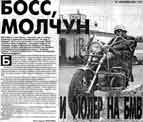 В минувшие выходные дни состоялся второй весенний мотопробег, организованный редакцией газеты "Золотое кольцо" и клубом любителей тяжелых мотоциклов "Черные медведи". На сей раз в зоне нашего внимания оказались Углич, Новый Некоуз, Мышкин и Большое Село. 13. 00, Ярославль, площадь Труда. Мы стартуем. На площади собралось огромное количество зрителей. Естественно, основное внимание привлекли невиданной красоты и мощи главные герои нашего мотопробега - тяжелые мотоциклы. А посмотреть есть на что. Здесь и настоящие раритеты - БМВ сороковых годов, легендарный "Харлей-Дэвидсон" WLA-42 1944 года выпуска. Его владелец ХД рассказал, что заносил своего будущего неукротимого зверя в гараж чуть ли не в карманах, а именно в виде винтиков, гаечек и горы ржавого железа достался "Харлей" своему нынешнему обладателю. Мальчишки толпились, разумеется, вокруг "Кавасаки-вулкан"-1500. Такой мотоцикл не встретишь так запросто, если выйдешь прогуляться по родному городу. Узнав же, что стоит хромированная блестящая игрушка немного немало 16 тысяч долларов, пацаны замирали в благоговейном молчании и не решались даже дотронуться до великолепного мотоцикла. Оказались в нашем кортеже и "Хонда-шадоу"-1100, "Хонда-магна"-750 (Около последней я подслушала презабавный диалог двух "специалистов": - Гляди-ка, "Магна"! Да-не, это "Хонда"! Во, лопух! Ведь "Хонда"- это сорт сигарет, а не мотоцикл!). Но ближе к делу. Взревели мощные двигатели, и наш кортеж из 23 мотоциклов, возглавляемый УАЗом 66-го годы выпуска с развевающимися флагами газеты "Золотое кольцо" и клуба байкеров "Черные медведи", двинулся в путь, отсчитывая первые километры. Маршрут нашего мотопробега частично совпал с вояжем губернатора области А. И. Лисицына. Но при всем своем уважении к Анатолию Ивановичу я не могу отказать себе в удовольствии процитировать мнение угличан: "Давеча губернатор проезжал, тоже народ собрался посмотреть. Но разве сравнишь с этими орлами!". Как вы уже поняли, незаметно за обменом первыми дорожными впечатлениями мы прибыли в Углич. 16.00. Углич. Нас уже ждали. Казалось, что во всем городке не осталось не одного жителя, который не бросил все свои домашние дела и не примчался со всех ног на площадь. Пацаны были на седьмом небе от счастья, когда узнали, что им предоставилась редчайшая возможность не только посмотреть-понюхать-полизать и потрогать мотоциклы руками, но и прокатиться на них. А пока байкеры красовались и катали всех желающих, состоялась встреча читателей с редакцией газеты "Золотое кольцо". Надо заметить, что наш тур носил не только рекламный, но и благотворительный характер. Сотрудник нашей газеты Николай Анатольевич Мухин и большой друг редакции маг-иллюзионист Джон Мостославский провели встречи - концерты с раздачей призов в четырех детских домах области, которые надолго запомнятся детворе. 22 мая, суббота, 11-00. Прощаемся с гостеприимным Угличем и держим путь в Новый Некоуз. В наших рядах произошла рокировка: я, покинув комфортабельный автобус, пересаживаюсь в седло мотоцикла. Теперь мне предстоит путешествовать на том самом знаменитом "Кавасаки-вулкан" в компании его владельца графа Старикова. Стрелой пролетев пару километров и открыв зажмуренные от ужаса глаза, я с удивлением поняла, что вчерашний день и всю предшествовавшую этому событию жизнь я прожила зря - в ней не было мотоциклов. В 13. 0
